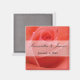 Den attraktiva vita personligen rosa ros bröllop med magnet med namn och datum.
