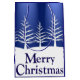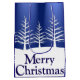 En liten julklapp med vita gräs träd-silhuetter på snönära backe mot midnatt blå himmel och "God jul" hälsning.