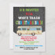 Toppen White Trailer Sopor jul Party Bash med grungande mobil husvagn med RV-vagn med christmas ljus och krans mot en snökväll himmel, Hand plockade illustration av McBooboos.
