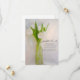 Söt White Tulips i Spara datum meddelande i Mjölk Flaska i Vår bröllop anger en elegant för ceremonin och mottagningen i giftermål i mars, april eller maj. Den här eleganten blomstrar den blommigt anpassningsbarna under den kritiska behållan med datumangivelsen ett fotografi av blommar av vita tulpanblommor i en vintage av möhippa av glas mjölk flaska och vit med vit satin. Finns som en utskriven inbjudan att skicka eller som en digital nedladdning för att enkelt kunna dela digitalt online.
