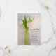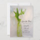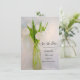 Klassen White Tulips i Spara datum meddelande vid Mjölk Flaska i Vår bröllop är en elegant för ceremonin och mottagningen vid vårinsatsen i giftermål i mars, april eller maj. Den här eleganten blomstrar den blommigt anpassningsbarna under den kritiska behållan med datumangivelsen ett fotografi av blommar av vita tulpanblommor i en vintage av möhippa av glas mjölk flaska och vit med vit satin. Finns som en utskriven inbjudan att skicka eller som en digital nedladdning för att enkelt kunna dela digitalt online.