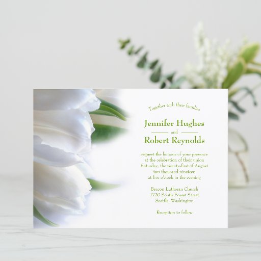 Enkel att anpassa blommigt Inbjudningskort för möhippan med vita tulpanfoto.