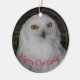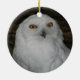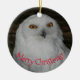 För uggla samlare! Rund julprydnad som innehåller fotobilden av ett vitt Snowy Uggla med gult ögon tillsammans med "God jul" tryckt med röd text. Bild utskriven på båda sidor. Markera ditt prydnadsämne stil.