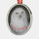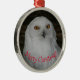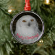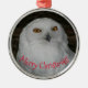 För uggla samlare! Rund julprydnad som innehåller fotobilden av ett vitt Snowy Uggla med gult ögon tillsammans med "God jul" tryckt med röd text. Bild utskriven på båda sidor. Markera ditt prydnadsämne stil.