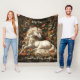 White Unicorn Blommigt Fantasy Mysigt Sleeping Hor Fleecefilt