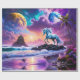 Vacker vit Unicorn 0n en tropisk strand under fullt AI Art av minx267