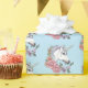 White Unicorn Rosa Flowers Blue Presentpapper