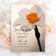 Meddela er ceremoni i giftermål under våren mars, april eller maj i elegant med elegant White Vår Daffodil Bröllop spara datum i annonsen. I denna anpassningsbar av blomsterlapp, den ursprungliga behållan, finns det ett fotografi av en vit daffodilbloms-blommar på stjälken med en orange eller ett knarkargont och en beige bakgrund. Finns som en utskriven inbjudan att skicka eller som en digital nedladdning för att enkelt kunna dela digitalt online.
