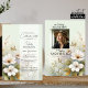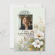 Firande på livets femininininininbjudningskort. Rena (återförenas) Till minne, sympati, hedersson. Watercolor White-vilda blommor på gröntens bakgrund. Personlig mallar så att du kan redigera teckensnitt, färg och storlekt. Lägg till bild/bild. Elektronisk digital nedladdningsbar (nedladdning).