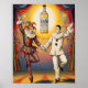 Poster med White Willow Absinthe annons och med en dans Jester och Pierrot mot färglös bakgrund.