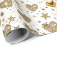 White backgrounds with gold sparkly hearts wrapping paper, suitable for bridal showers and weddings.