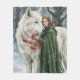 White Wolf Redhead Druid Winter Berries Fantasy Ar Fleecefilt