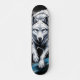 Unleash the wild on the streets with this captivating skateboard deck design featuring a ferocious, snarling wolf head. Rendered in a stunning dark fantasy illustration style, every detail of its textured fur is brought to life, culminating in piercing, electric blue glowing eyes that command attention. Set against a mystical backdrop of a cosmic nebula swirling with deep purples and blues, this design evokes raw power and otherworldly energy. Perfect for riders who embrace their inner beast and want a board that truly stands out from the pack. Ride with the spirit of the wolf.