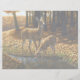 En whitetail-doe vakar över sin sex månader gamla fawn medan den dricker från en ström. Höst färger finns överallt i den omgivande skogens träd, ge scenen en varm och mysigt orange glöd. Realistiskt konstnärligt verk skapat från en ursprunglig oljemålning av häst- och vildlevande konstnären Crista S. Forest.