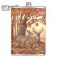 En vit buck och vilar på en solljabast under ett maple träd. Ljusröd, orange och guld fall färgad löv skapar en vacker höstscen. Realistiskt konstnärligt verk skapat från en originalmålning av vilt- och hästkonstnären Crista S. Forest.