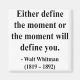 "Definiera antingen tidpunkten eller tidpunkten som definierar dig" - Walt Whitman.