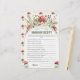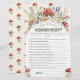 Who Knows Mommy Best? Baby Shower Game Card featuring a whimsical watercolor design with red toadstool mushrooms, wildflowers, and soft greenery. Cute baby shower game and cards for guests for a forest mushrooms themed baby shower - perfect for a Whimsical, cute celebration. Guests answer fun questions about the mom-to-be and tally their score, making an easy, interactive activity for game tables, favor displays, and woodland/boho baby shower decor.