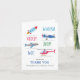 Ett födelsedagsgratulationskort för barn föreställande rymdfärja, raket, flygplan, helikopter.
