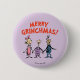 This heartwarming illustration captures the true meaning of Christmas! It features three colorful Whos of Whoville standing together, holding hands, and smiling with their eyes closed, looking like they are happily singing or swaying. They are dressed in unique, whimsical Whoville outfits (pink fringe, purple zigzag, blue stripes). Arching cheerfully above them in bold red text is the phrase: "MERRY GRINCHMAS!" This graphic perfectly embodies the communal and sweet spirit of the holidays!