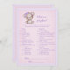 Välgörligt brun och lila baby björn för en flickdusch. Vad är det på ditt Mobila babyduschspel? Rosa och lila filt med lila sydd kant gräns mot bakgrund. Mallar finns på baksidan.