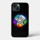 Artiskt ritad, ljuspentagram med fem magiska inslag, vatten, jord, eld, stral, luft på svart bakgrund. Wiccan pentagram. Wicca