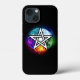 Artiskt ritad, ljuspentagram med fem magiska inslag, vatten, jord, eld, stral, luft på svart bakgrund. Wiccan pentagram. Wicca