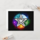 Artiskt ritad, ljuspentagram med fem magiska inslag, vatten, jord, eld, stral, luft på svart bakgrund. Wiccan pentagram. Wicca