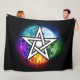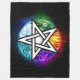 Artiskt ritad, ljuspentagram med fem magiska inslag, vatten, jord, eld, stral, luft på svart bakgrund. Wiccan pentagram. Wicca