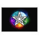 Artiskt ritad, ljuspentagram med fem magiska inslag, vatten, jord, eld, stral, luft på svart bakgrund. Wiccan pentagram. Wicca