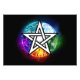 Artiskt ritad, ljuspentagram med fem magiska inslag, vatten, jord, eld, stral, luft på svart bakgrund. Wiccan pentagram. Wicca