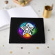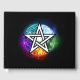 Artiskt ritad, ljuspentagram med fem magiska inslag, vatten, jord, eld, stral, luft på svart bakgrund. Wiccan pentagram. Wicca