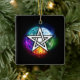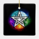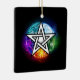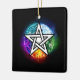 Artiskt ritad, ljuspentagram med fem magiska inslag, vatten, jord, eld, stral, luft på svart bakgrund. Wiccan pentagram. Wicca
