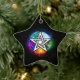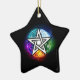 Artiskt ritad, ljuspentagram med fem magiska inslag, vatten, jord, eld, stral, luft på svart bakgrund. Wiccan pentagram. Wicca