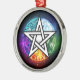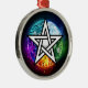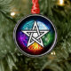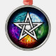 Artiskt ritad, ljuspentagram med fem magiska inslag, vatten, jord, eld, stral, luft på svart bakgrund. Wiccan pentagram. Wicca