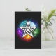 Artiskt ritad, ljuspentagram med fem magiska inslag, vatten, jord, eld, stral, luft på svart bakgrund. Wiccan pentagram. Wicca