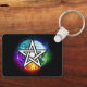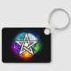 Artiskt ritad, ljuspentagram med fem magiska inslag, vatten, jord, eld, stral, luft på svart bakgrund. Wiccan pentagram. Wicca