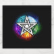 Artiskt ritad, ljuspentagram med fem magiska inslag, vatten, jord, eld, stral, luft på svart bakgrund. Wiccan pentagram. Wicca