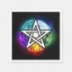 Artistically drawn, luminous pentagram with five magical elements, water, earth, fire, astral, air on black background. Wiccan pentagram. Wicca