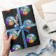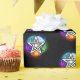 Artiskt ritad, ljuspentagram med fem magiska inslag, vatten, jord, eld, stral, luft på svart bakgrund. Wiccan pentagram. Wicca