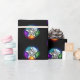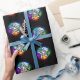 Artiskt ritad, ljuspentagram med fem magiska inslag, vatten, jord, eld, stral, luft på svart bakgrund. Wiccan pentagram. Wicca