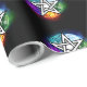 Artiskt ritad, ljuspentagram med fem magiska inslag, vatten, jord, eld, stral, luft på svart bakgrund. Wiccan pentagram. Wicca