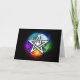 Artiskt ritad, ljuspentagram med fem magiska inslag, vatten, jord, eld, stral, luft på svart bakgrund. Wiccan pentagram. Wicca