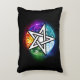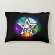 Artiskt ritad, ljuspentagram med fem magiska inslag, vatten, jord, eld, stral, luft på svart bakgrund. Wiccan pentagram. Wicca