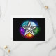 Artiskt ritad, ljuspentagram med fem magiska inslag, vatten, jord, eld, stral, luft på svart bakgrund. Wiccan pentagram. Wicca