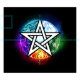 Artiskt ritad, ljuspentagram med fem magiska inslag, vatten, jord, eld, stral, luft på svart bakgrund. Wiccan pentagram. Wicca
