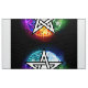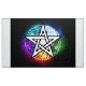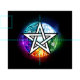 Artiskt ritad, ljuspentagram med fem magiska inslag, vatten, jord, eld, stral, luft på svart bakgrund. Wiccan pentagram. Wicca