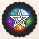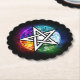 Artiskt ritad, ljuspentagram med fem magiska inslag, vatten, jord, eld, stral, luft på svart bakgrund. Wiccan pentagram. Wicca