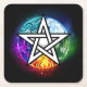 Artiskt ritad, ljuspentagram med fem magiska inslag, vatten, jord, eld, stral, luft på svart bakgrund. Wiccan pentagram. Wicca
