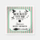 Wicked Cute Baby is Brewing Halloween Baby Shower Napkins - A fun and vintage inspired baby shower decor in trendy colors of pink and green with stripes. Perfect for a witch themed baby shower, witchy baby brunch or Halloween baby soiree. With a witch hat, black cauldron, spooky bats, spider webs and a witch broom. Retro lettering adds to the spooky vibe. Celebrate a magical baby shower with these editable baby shower decorations napkins template.