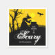En ondskefull häxa och hennes kauldron, ett svart fladdermus, ett betesstaket och ett bländat träd-silhuetterat mot ett skådespel himlar, dessa pappra blöjor från Halloween fest har ord: "Ät, Drick och Var scary." Kan vara personlig eller lämna av det avsnittet tomt. MATCHING-objekt i vår butik.